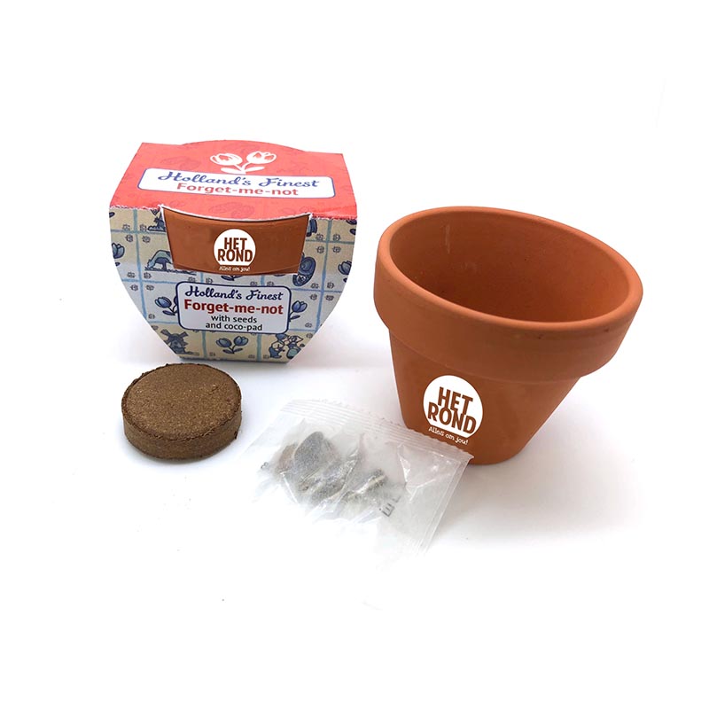 Onze groene promotieartikelen ondersteunen uw imago en uw visie op duurzaamheid en zorgen voor een persoonlijke uitstraling van uw communicatie. De green gifts bevatten een zakje met zaad en een turf- of kokostablet. Kies voor de plantensoort die bij uw boodschap past, voorzien van Delfts blauwe wikkel. Het potje wordt bedrukt met uw logo!