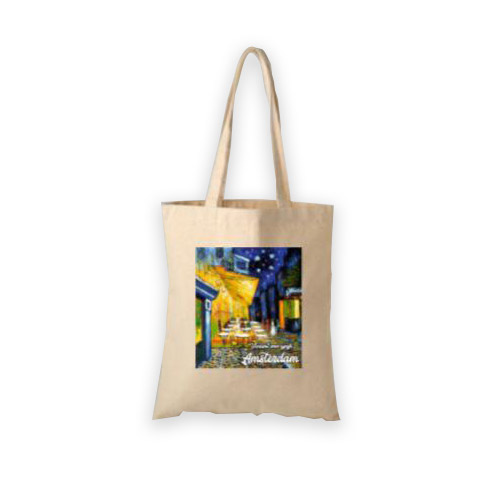 Ontdek ons unieke souvenir uit Holland: een prachtige luxe katoenen tas met het iconische meesterwerk "Caféterras bij nacht" van de beroemde Nederlandse kunstenaar Vincent van Gogh. Deze speciale tas brengt de charme van Nederlandse kunst en cultuur samen in een stijlvol en functioneel ontwerp.