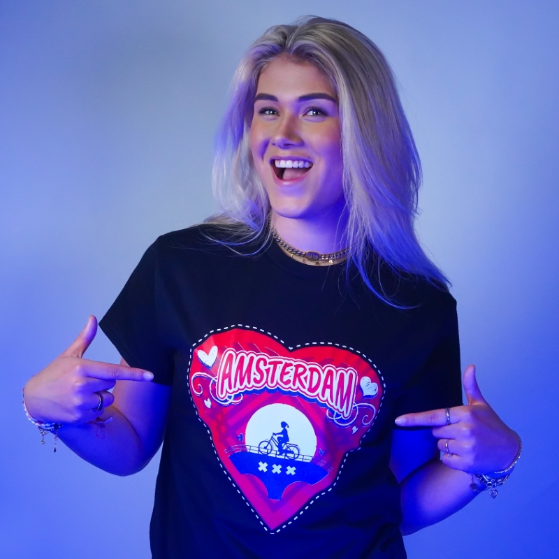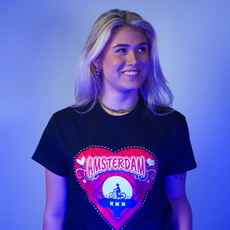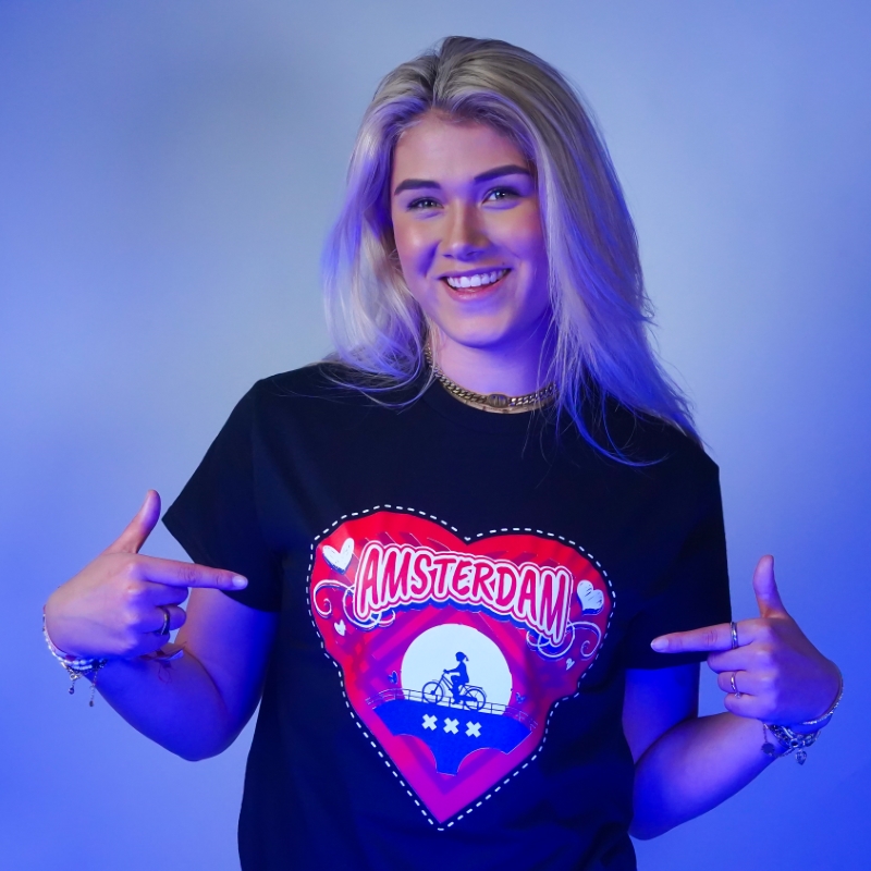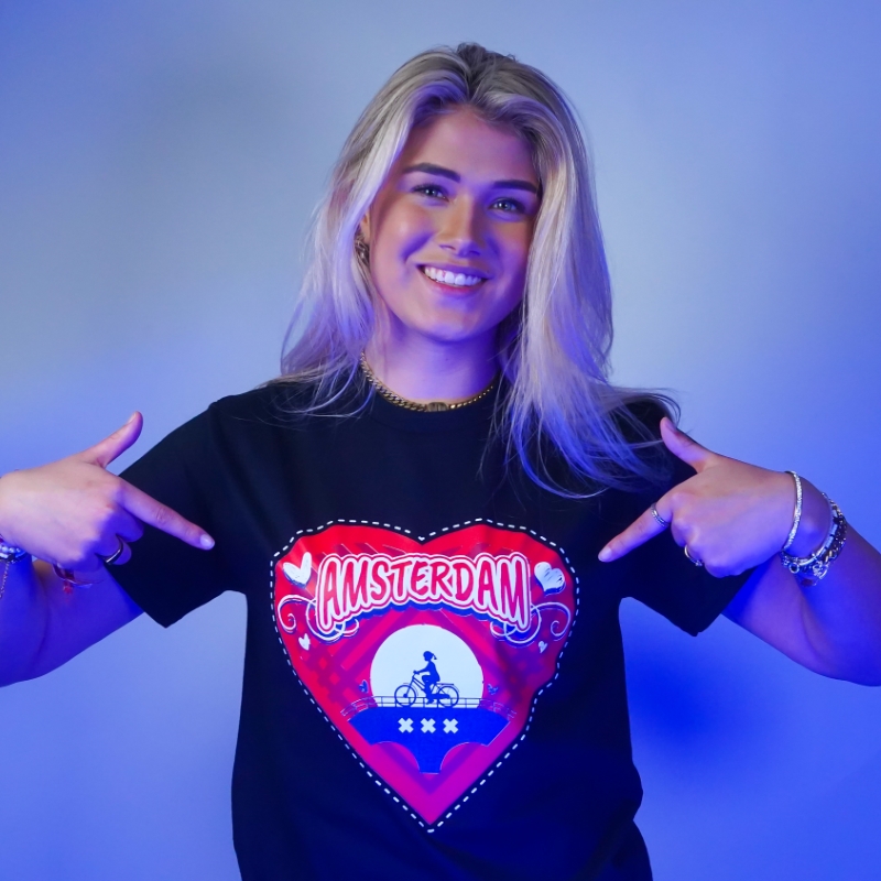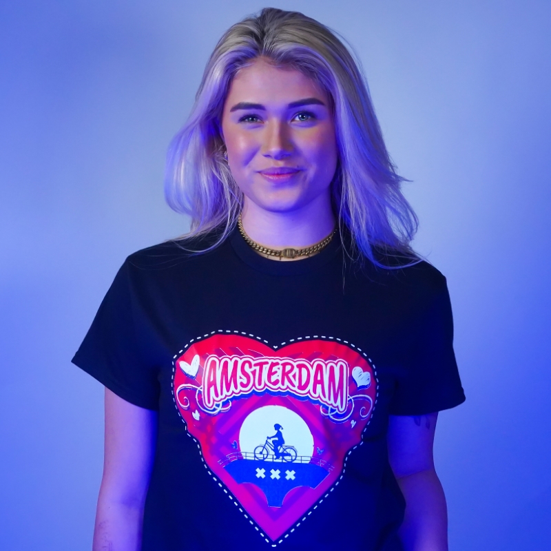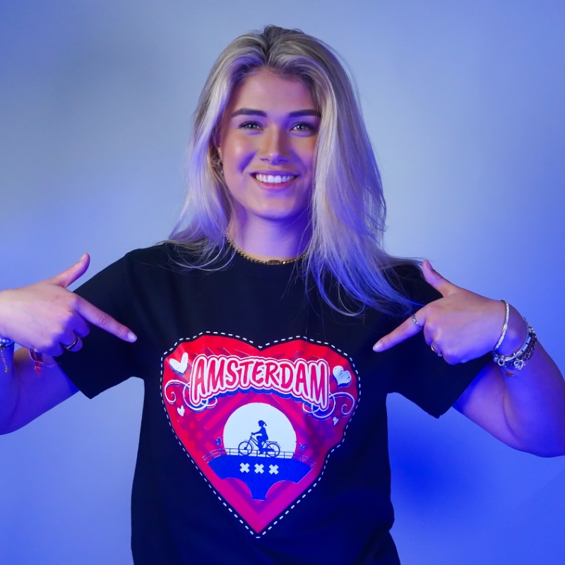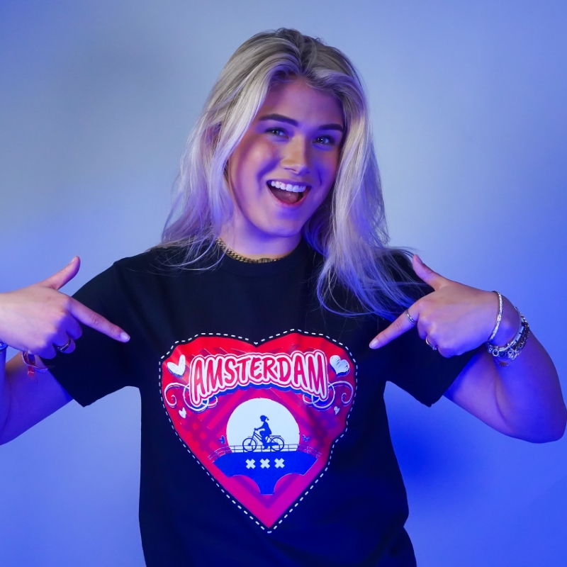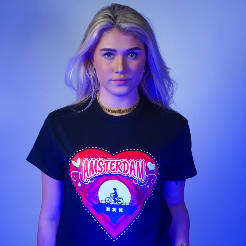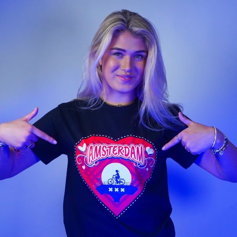 T-shirt Amsterdam hart – zwart